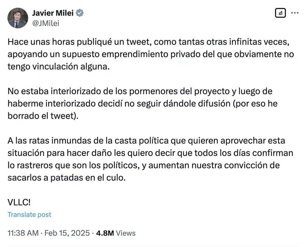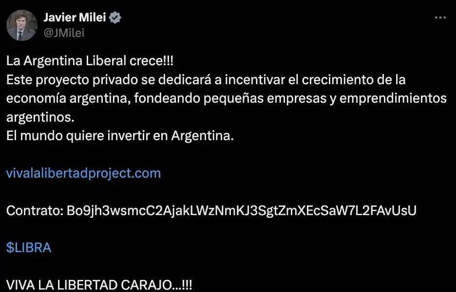 但这一切都破灭在了 Milei 的下一条推特。