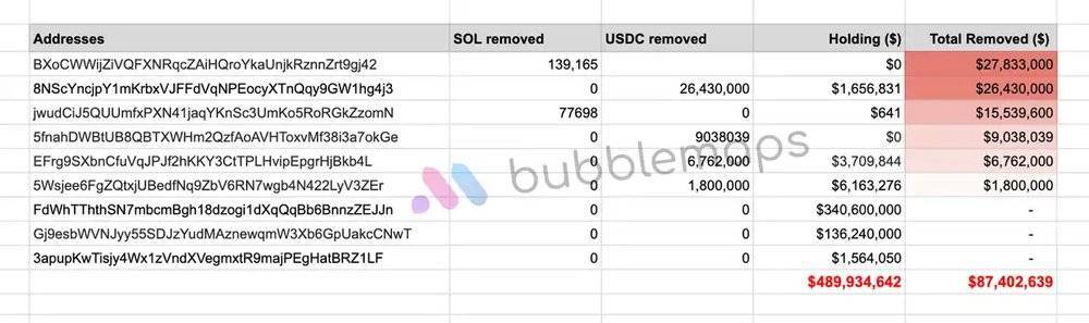 早晨 9 时,据 Bubblemaps 分析,LIBRA 发币团队就已经通过多个地址的掏池子行为获利 8700 万余美元。