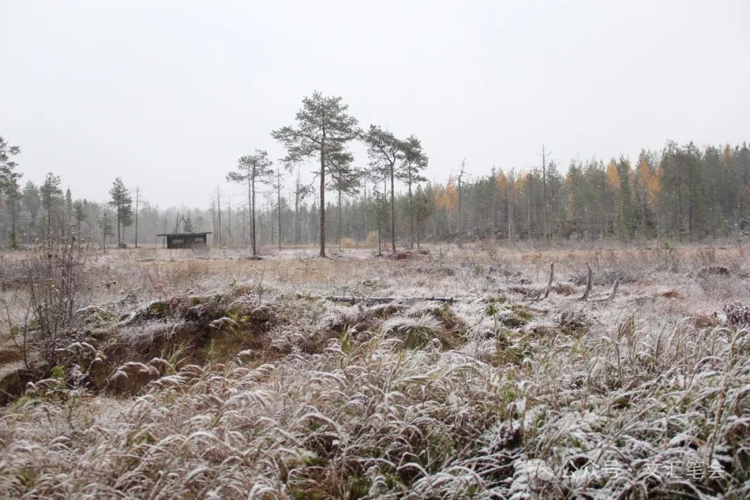 还有一次专门去见棕熊,是在芬兰和俄罗斯的边境处。那时我和小狮子已经谈了一阵子恋爱,准备挑战一下一起旅行。凭借着网上不多的英文信息,我找到这里有一处可以观察和拍摄棕熊的掩体。十月的北方已经进入冬天,下了初雪。天也黑得早了,已经不是适合整晚观察的极昼季节。负责接待的年轻男性让我们不要作声,带我们在林中徒步了一段路,走上狭窄的木栈道,来到一排简易的小棚屋旁,留给了我们一把钥匙。这晚,我和小狮子是这里唯一一组客人。