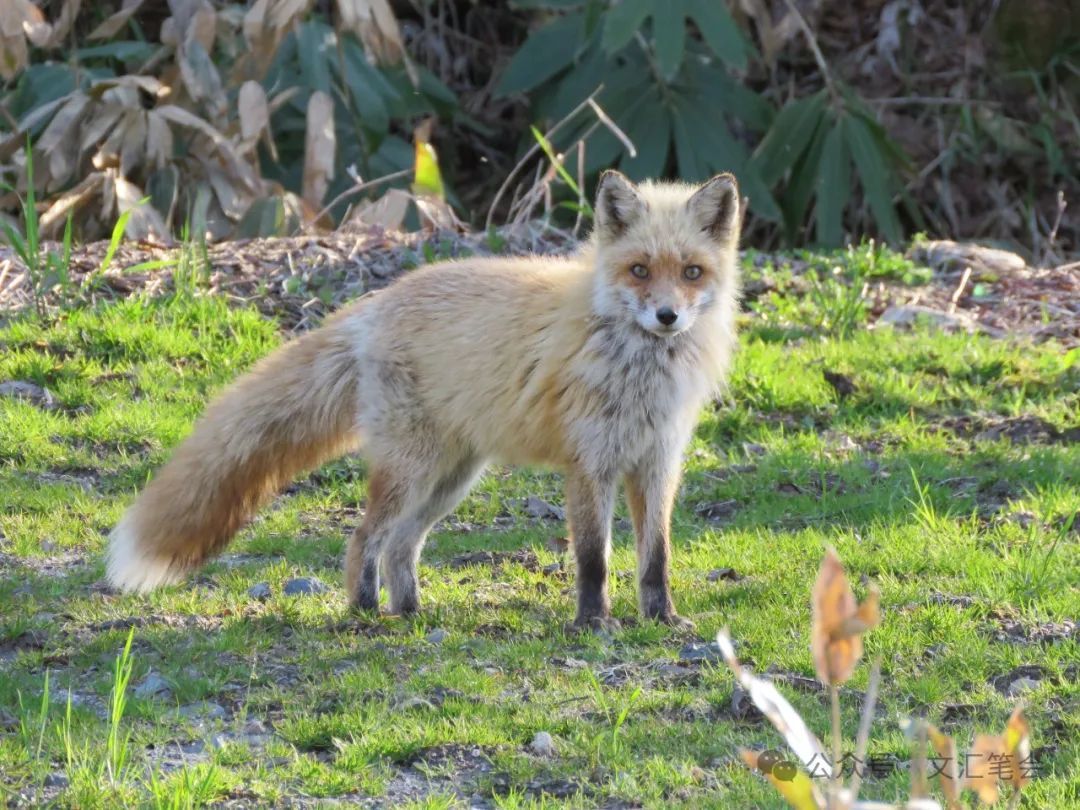 桥头有块牌子,写着“棕熊栖息地!注意”。因为提醒熊出没的牌子在北海道太多了,我反而没有太在意。站在桥上,我们用望远镜横扫着水面,家麻雀站在岸边的树顶上,远处的水边有一对儿绿翅鸭,然后是一对鸳鸯,苍鹭静静地站在水边,来不及看清的鹬鸟飞远了。小狮子自豪地在河边的草地上发现了一群趴着歇息的北海道梅花鹿,它们静静地和地面融为一体。不远处的一棵独树旁,一只赤狐正蹑手蹑脚,躲在草丛中向鹿群接近。斜阳照亮了狐狸的轮廓,皮毛的边缘金灿灿地闪着光。我们入神地看着狐狸,回过神来,一整个鹿群不知什么时候不见了。再去看狐狸,狐狸也不见了。桥下仿佛什么都没发生过。