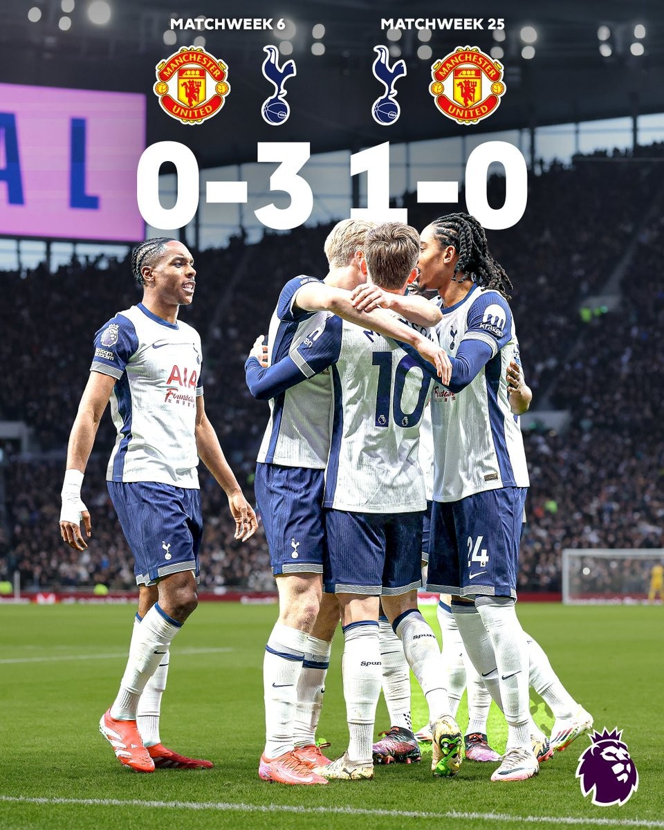 英超第25轮,热刺主场1-0击败曼联,队史首次单赛季英超双杀曼联,热刺成为自2012-13赛季的切尔西以来,首支做到这一点的球队。