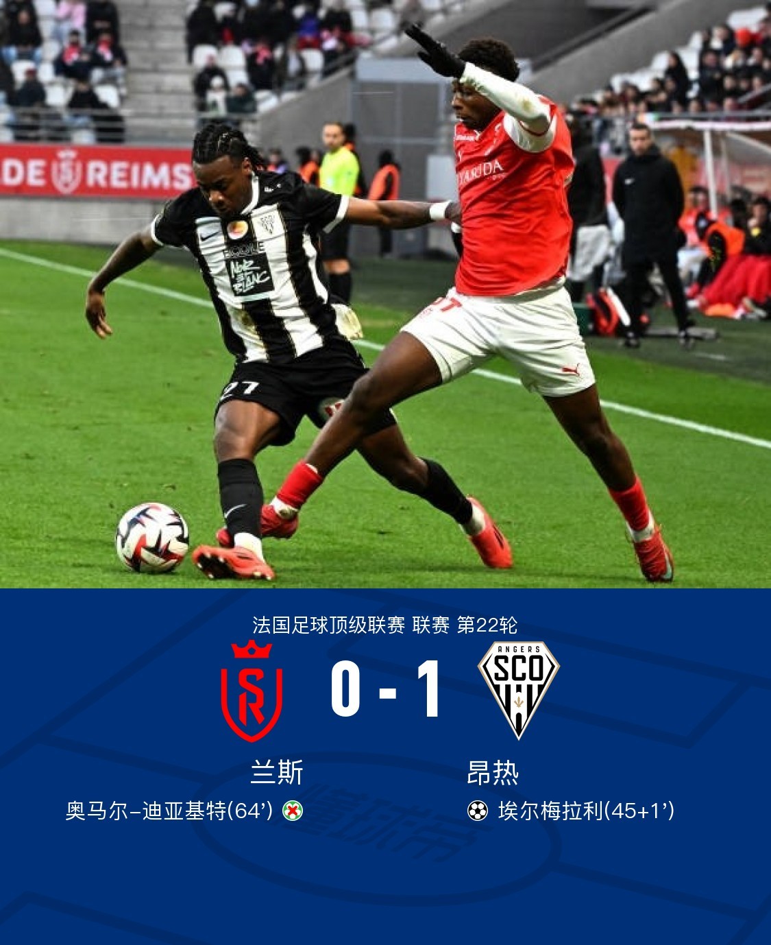 北京时间2月17日法国足球顶级联赛 联赛 第22轮,兰斯主场对阵昂热。昂热埃尔梅拉利破门。最终比分兰斯 0-1 昂热。