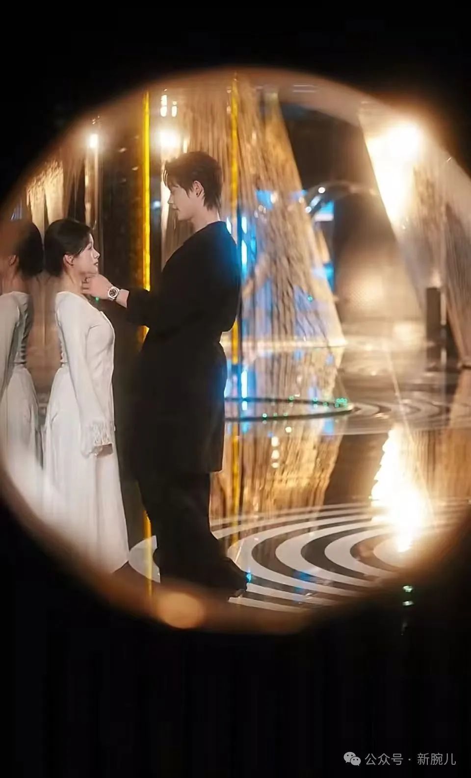 你看得蛮细的。那场戏是女主鹿鸣于第一次成功的反抗了鹿家,同时她确定眼前的男主确实很配合自己,执行力超强,是一把好刀。但是,在那场戏中,双方有信息差,女主开心的点在于眼前的男主很可靠,是把好刀,但男主的点是误以为她真的喜欢自己,因此,两个人产生的美好都有点不真实,就像你说的,是一种真真假假的感觉。因此,在整部剧中我加了高柔和处理,整个镜头看起来像梦境,包括在镜头拍摄上做了慢门摄影,强化了虚虚实实的梦幻氛围感。不过圆形的门框没有提前设计,是场地会所的门恰好有圆框,我想着这样一个构图正好能夸张点,增强戏剧感,就做了这样的处理。