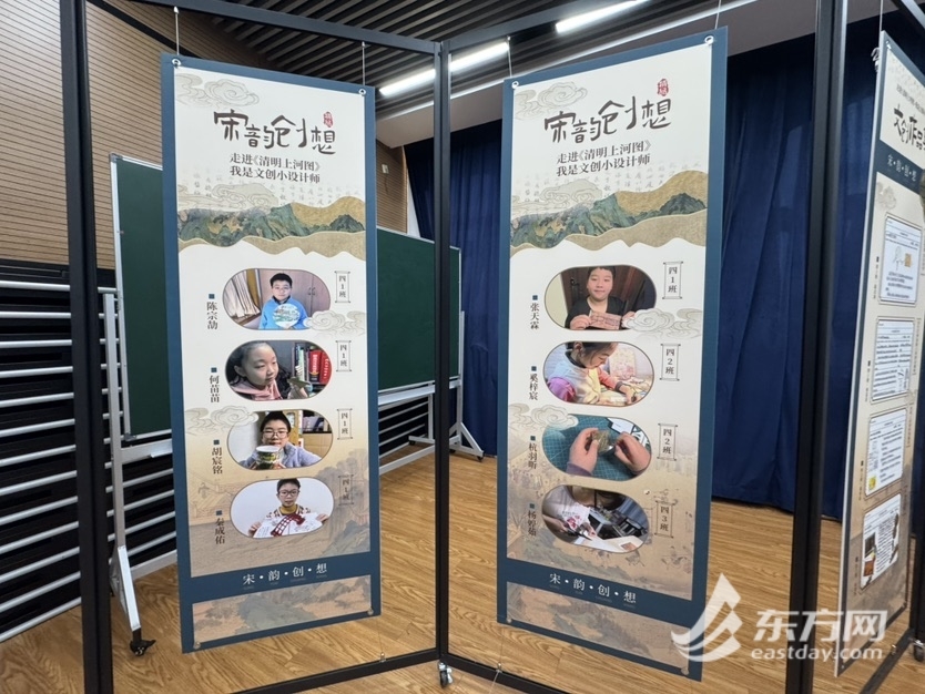 记者了解到,“宋韵创想”是学校四年级开展的跨学科主题学习。为了迎接学校经典活动“中国人过中国节”,学生们化身小小文创设计师,走进北宋张择端版《清明上河图》。他们在美术月乐中设计文创作品,在劳动老师指导下动手制作,在语文课堂中学习撰写设计表,用自己的作品布置装扮教室,在“中国人过中国节”活动当天评选最佳作品,用创制的作品改善生活、美化生活。