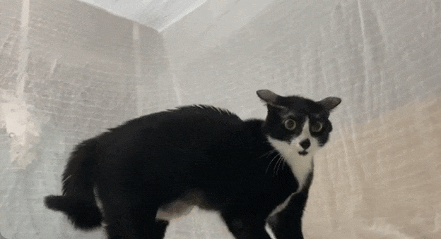 哈哈哈,大家家里有这种神经兮兮的奶牛猫不?