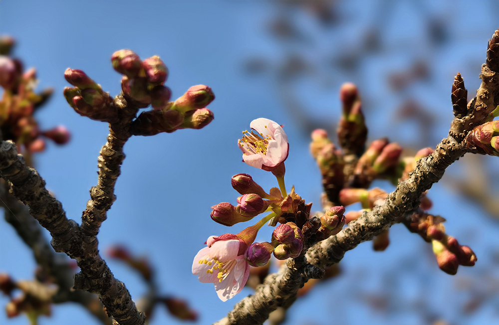 蛇年元宵节过后,天气依旧寒冷,但阳光已唤醒部分早樱。