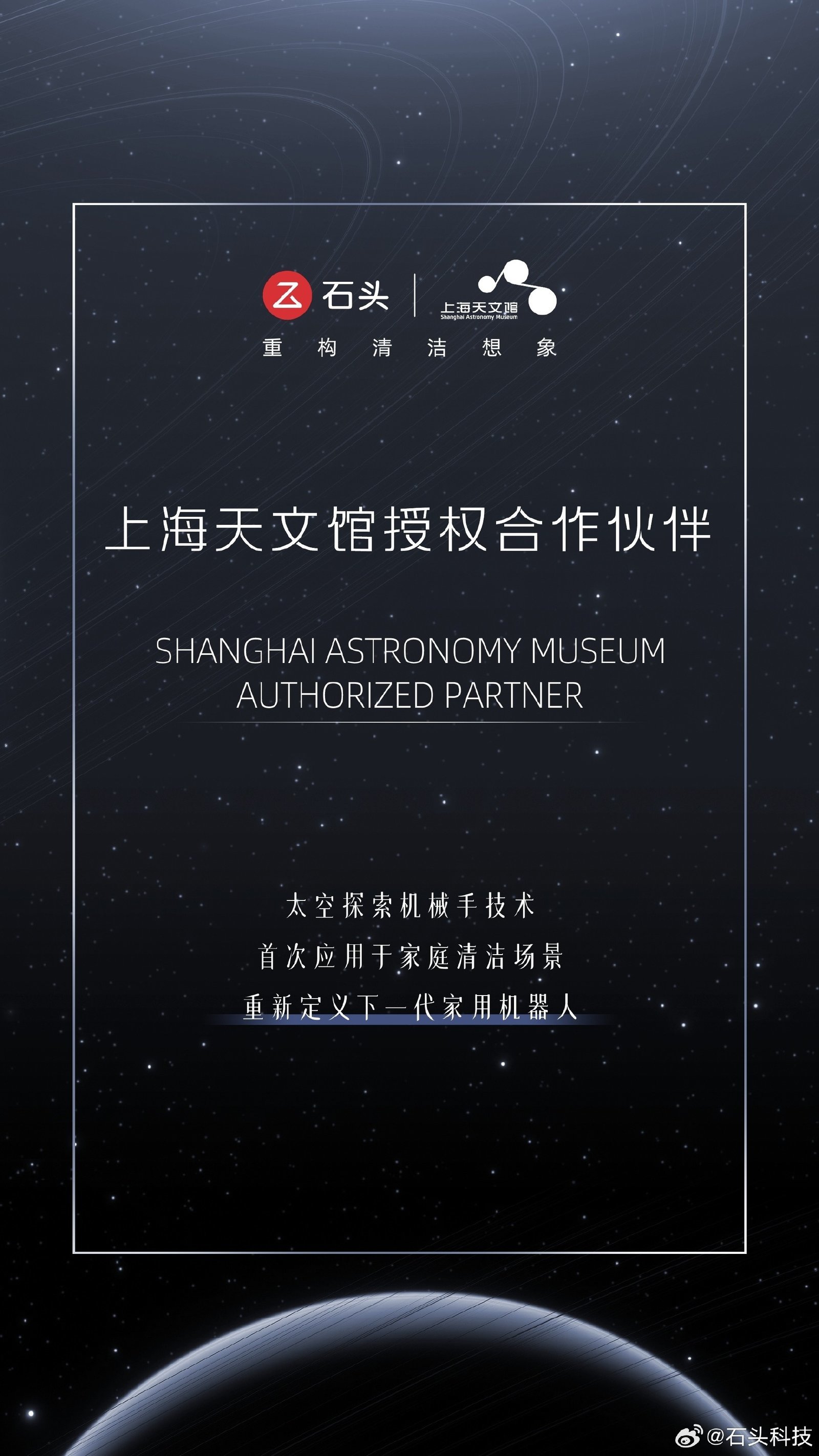 石头科技还正式成为了上海天文馆的授权合作伙伴,二者将一同探索清洁新宇宙,重新定义下一代家用机器人。