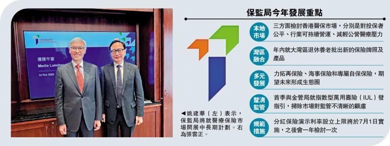 图:姚建华(左)表示,保监局将就医疗保险市场开展中长期计划。右为张云正。