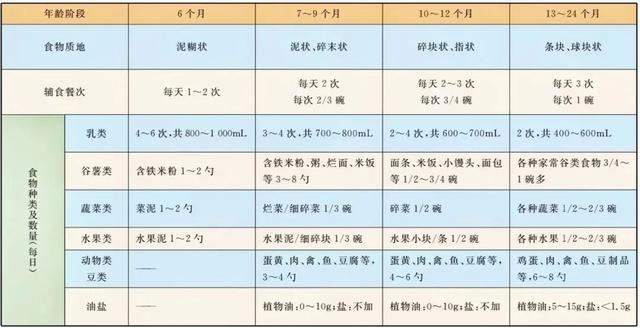 {辅食添加进程}注:1勺=10毫升;1碗=250毫升