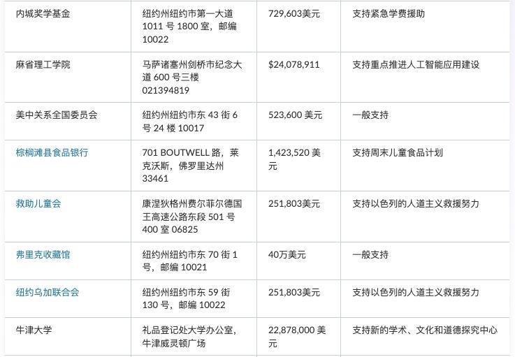 它捐款包括向麻省理工学院捐赠3.5亿美元,用于建造一座专门研究人工智能和计算的建筑,以及向牛津大学捐赠2.2亿美元,用于建立一个新的人文中心,该中心将包括人工智能伦理研究等。