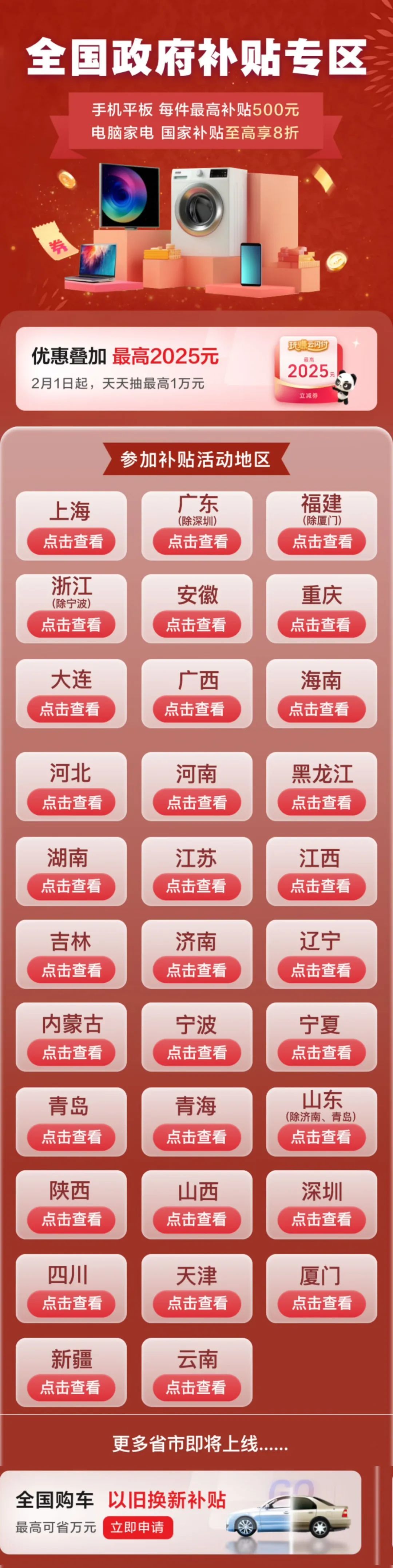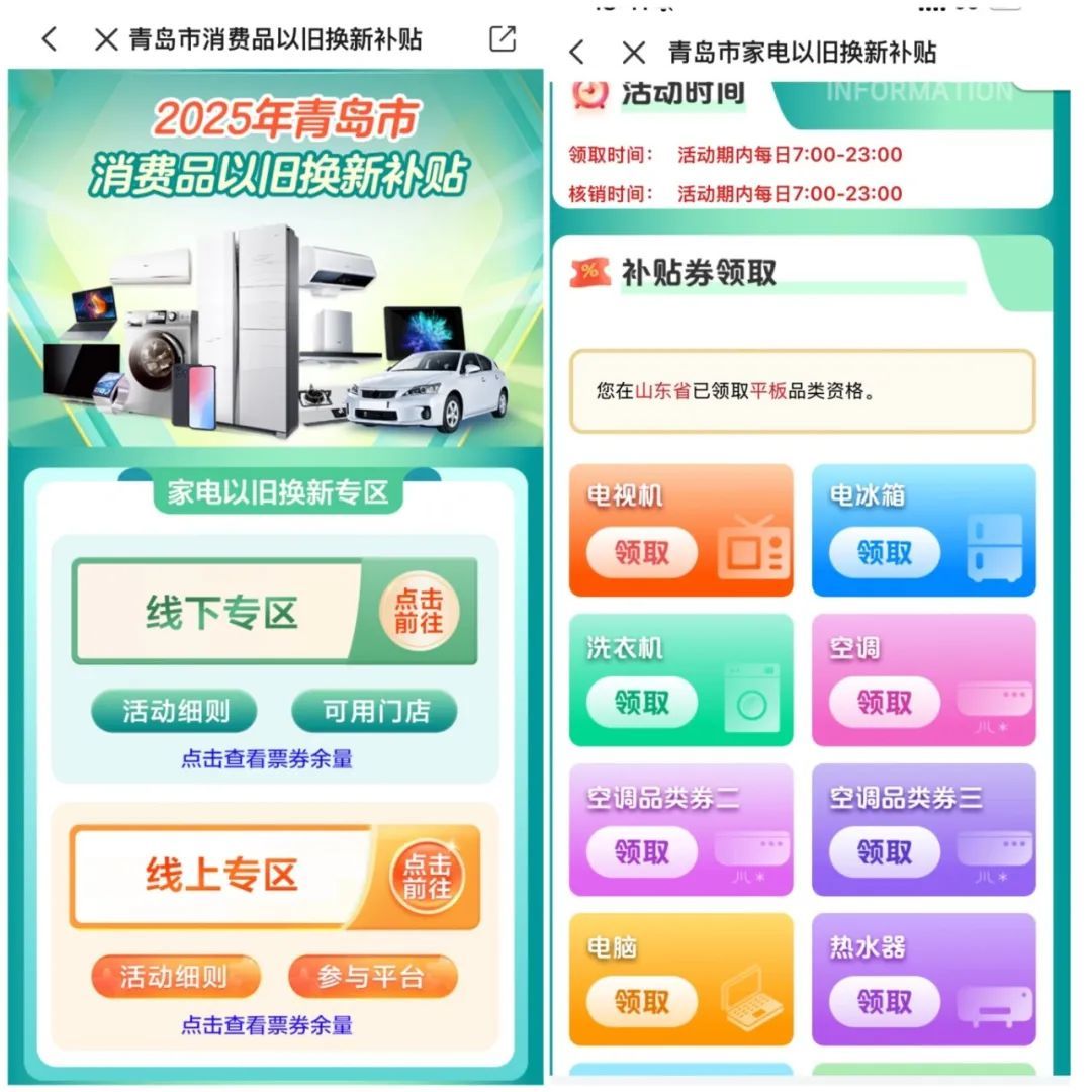 有家电专区和3C数码专区,所有补贴线上和线下都能用。