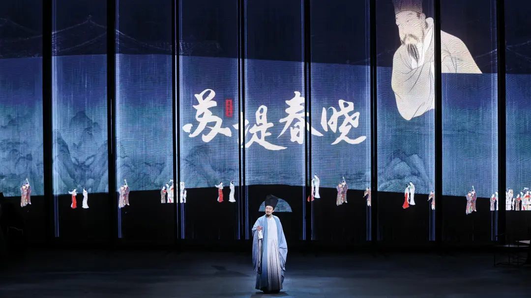 视觉上,话剧《苏堤春晓》以宋式美学为基调,创新使用山水画影像,营造似是而非、似非而是、亦真亦幻、浩然大气的舞台空间,展现了中国传统文化鼎盛时期“宋”之风骨气象和韵致。