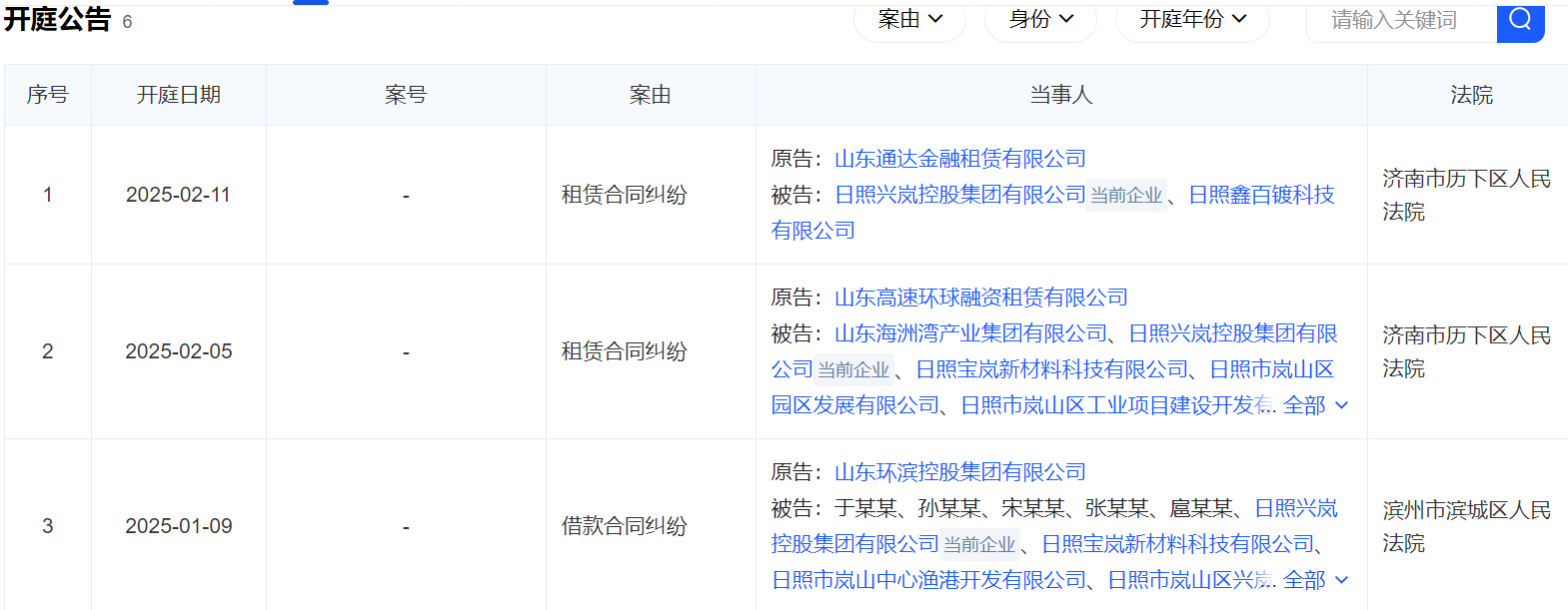 公开资料显示,日照兴岚控股集团有限公司成立于2011年01月11日,注册地位于山东省日照市岚山区安东卫街道圣岚西路188号,法定代表人为田文见。经营范围包括一般项目:以自有资金从事投资活动、融资咨询服务、园林绿化工程施工、海洋服务。许可项目:建设工程质量检测、建设工程施工、旅游业务、房地产开发经营、建设工程设计等。