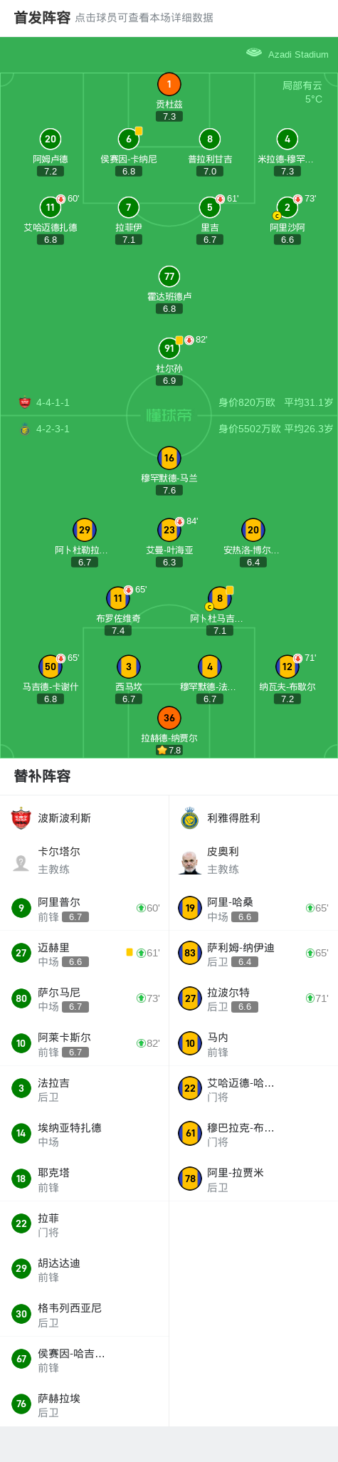 第65分钟,阿里-哈桑、纳伊迪登场,布罗佐维奇、卡谢什被换下