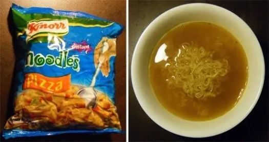 比如全世界口味最黑暗最怪的泡面排行榜里,有看了就不想买的披萨味泡面,