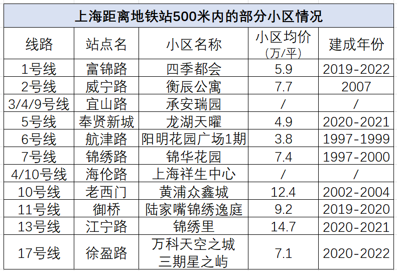 当然,上海步行5分钟左右到达的“正地铁房”还有很多