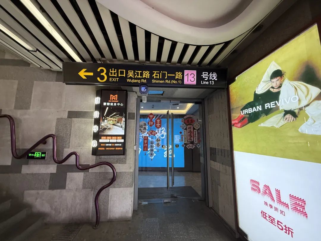 从门外看是这个效果,指示牌标着3号出口,再下一层楼就直接无缝衔接南京西路的检票口