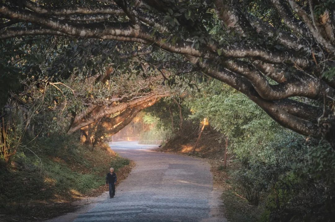 看蜂王树挂满蜂巢,看野生松鼠四处游弋,看巨大的榕树根,看人们穿梭于在茶山的道路上。