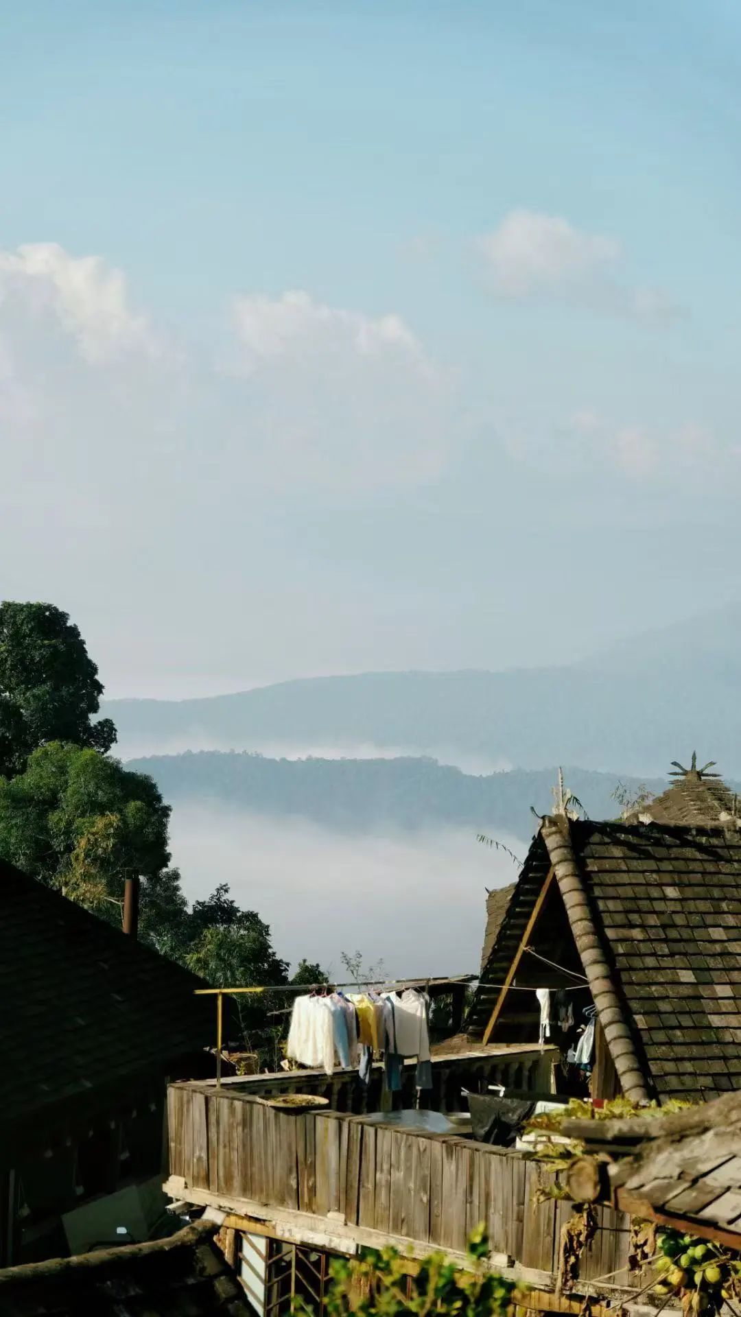 住在布朗族的木楼民宿,晨起推窗就是云海漫过古茶树的场景。