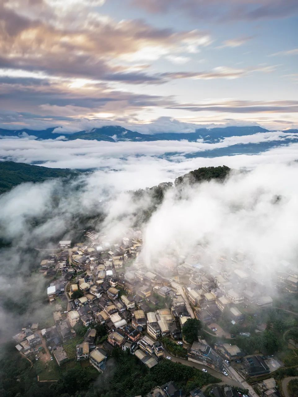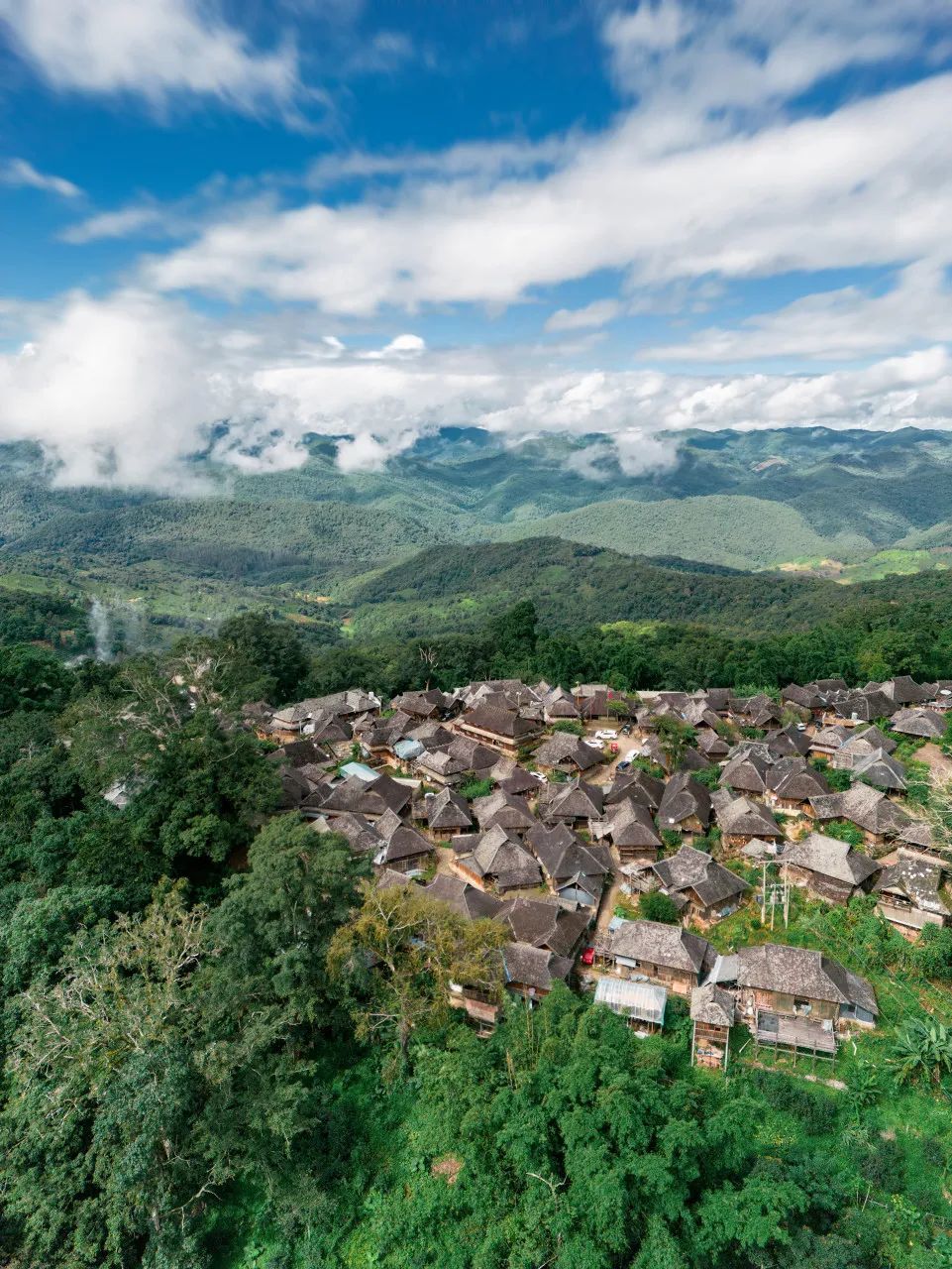景迈山中,遍布了云雾缭绕的寨子们。