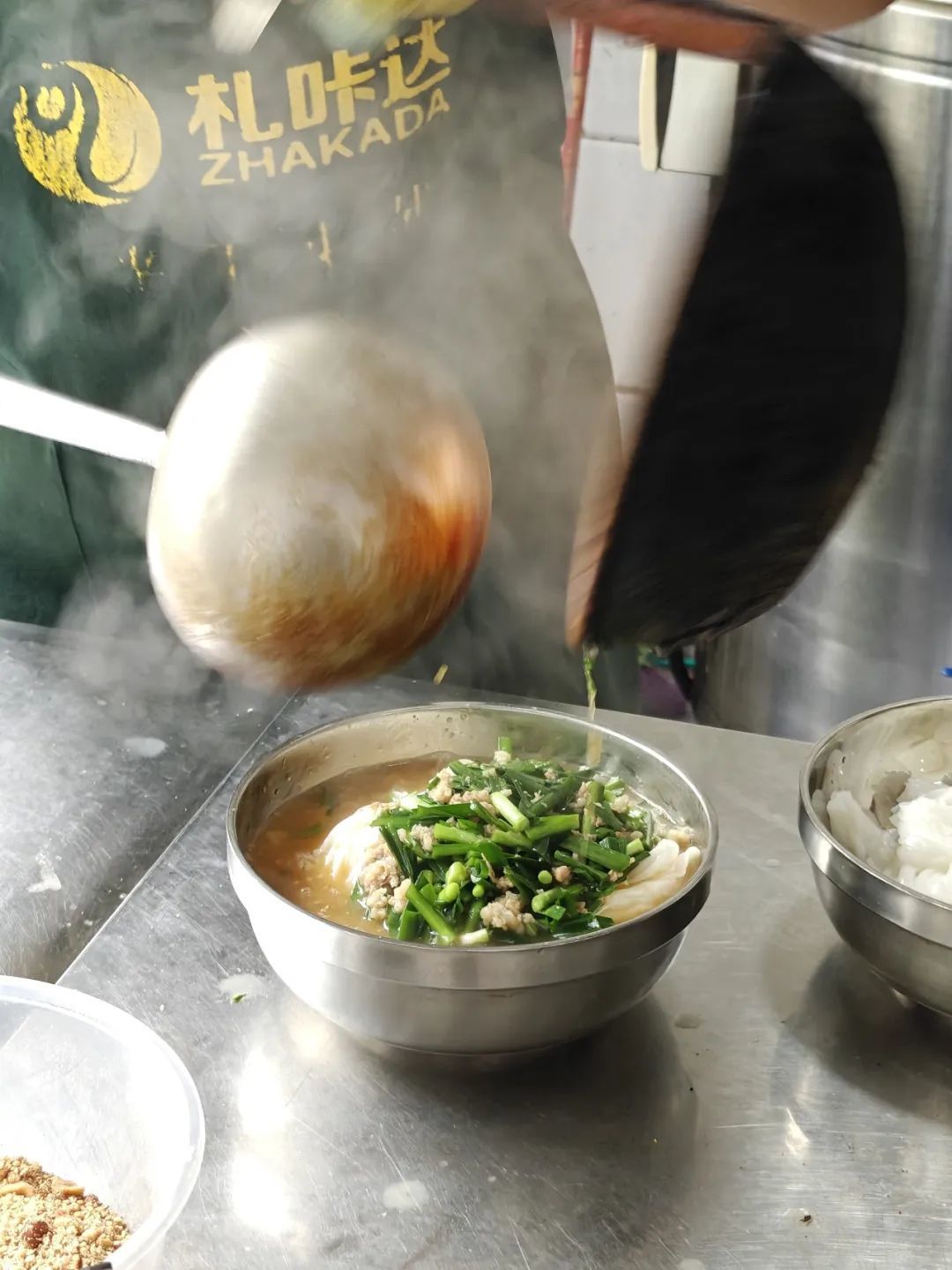 用本地的优质大米,口感Q弹爽,汤底现熬,再搭配上特制的酸醋,滚烫香辣的米线加一碗加冰果醋。