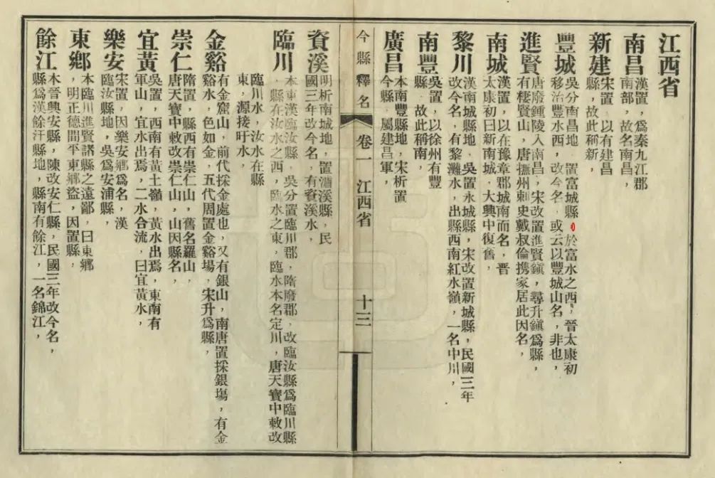 《今县释名》中关于江西的部分地名。