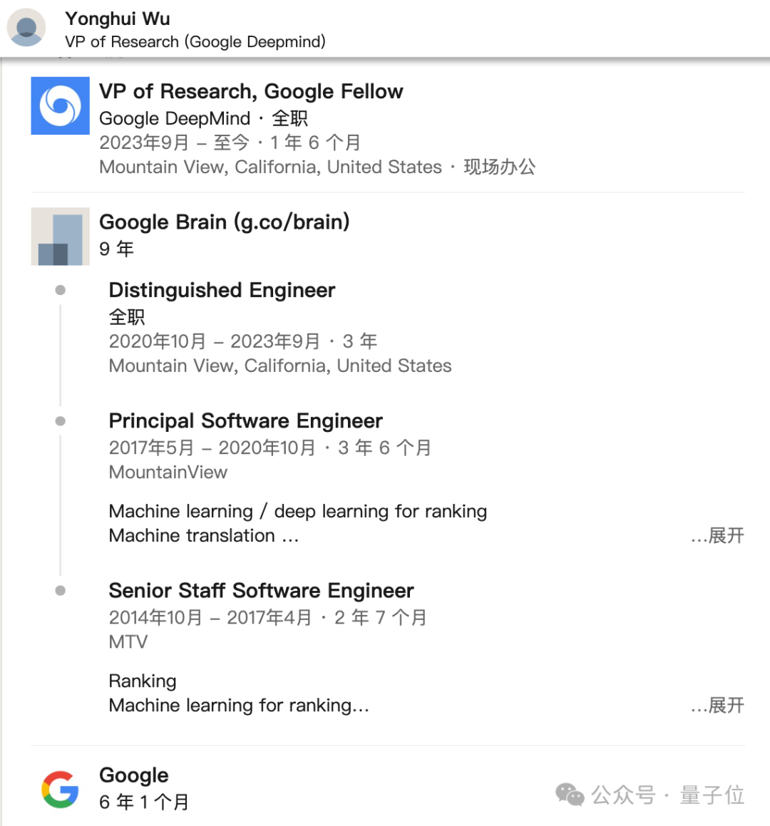 领英显示,吴永辉在此阶段已升任为谷歌研究副总裁、Google Fellow。