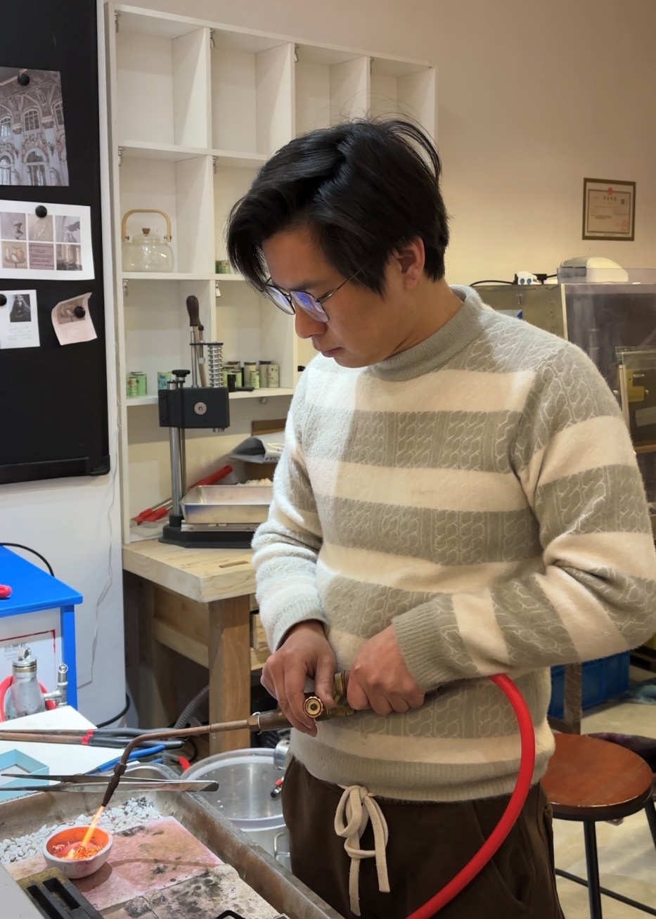 周师傅在熔金。图/九派新闻实习记者 黄宇程