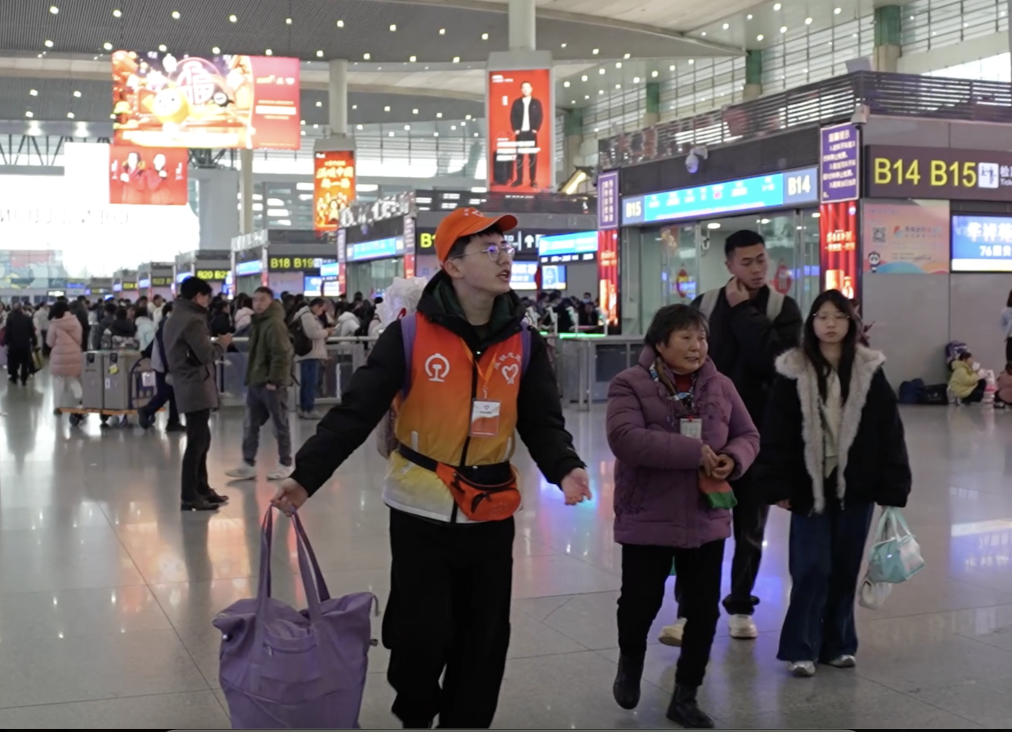 2025年春运,成都东站共有128名青年志愿者参与志愿服务,他们分布在车站的各个角落,有的在服务台为旅客答疑解惑,有的在检票口引导旅客乘车,有的在候车室帮助重点旅客搬运行李……这些年轻的志愿者们被称为候车室里的“跑腿小哥”,也是他们,为旅客送去温暖和便利,让旅客的出行路更加便捷、舒心。
