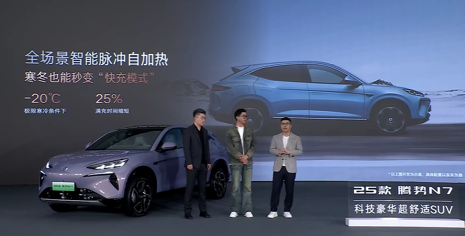 冬季充电也毫无压力,得益于全场景智能脉冲加热技术,新款N7实现了不挑桩全场景快速补能,-20℃极限寒冷环境下也能快速充电。