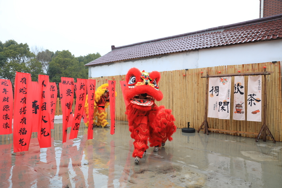 “幸会茶事”开门迎客这天,扎根于月狮村内的舞龙舞狮队成为“氛围担当”。/采访对象提供
