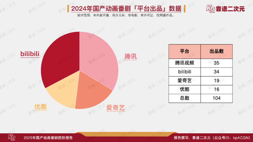 2024年全年新开播的112部国产动画番剧,低于2023年的123部,高于2022年的98部。其中,104部平台参与出品,同样低于前一年,仅平台出品的作品29部,占全部平台出品作品的四分之一。这些数据说明,平台和产业的资源在向头部集中,新内容的尝试有,但更谨慎了。
