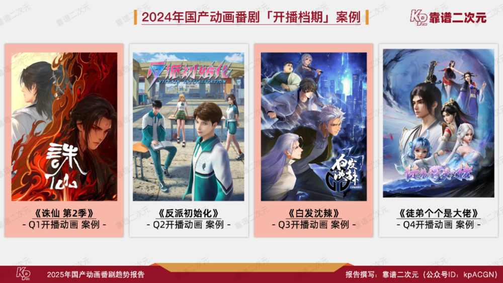 各季度更新的作品案例比如Q1开播的《诛仙 第2季》《咸鱼哥 第二季》;Q2开播的《小兵传奇》《少歌外传暗河传》;Q3开播的《白发沈辣》《笼中人》;Q4开播的《雪王之奇幻沙州》《永恒剑祖》等。