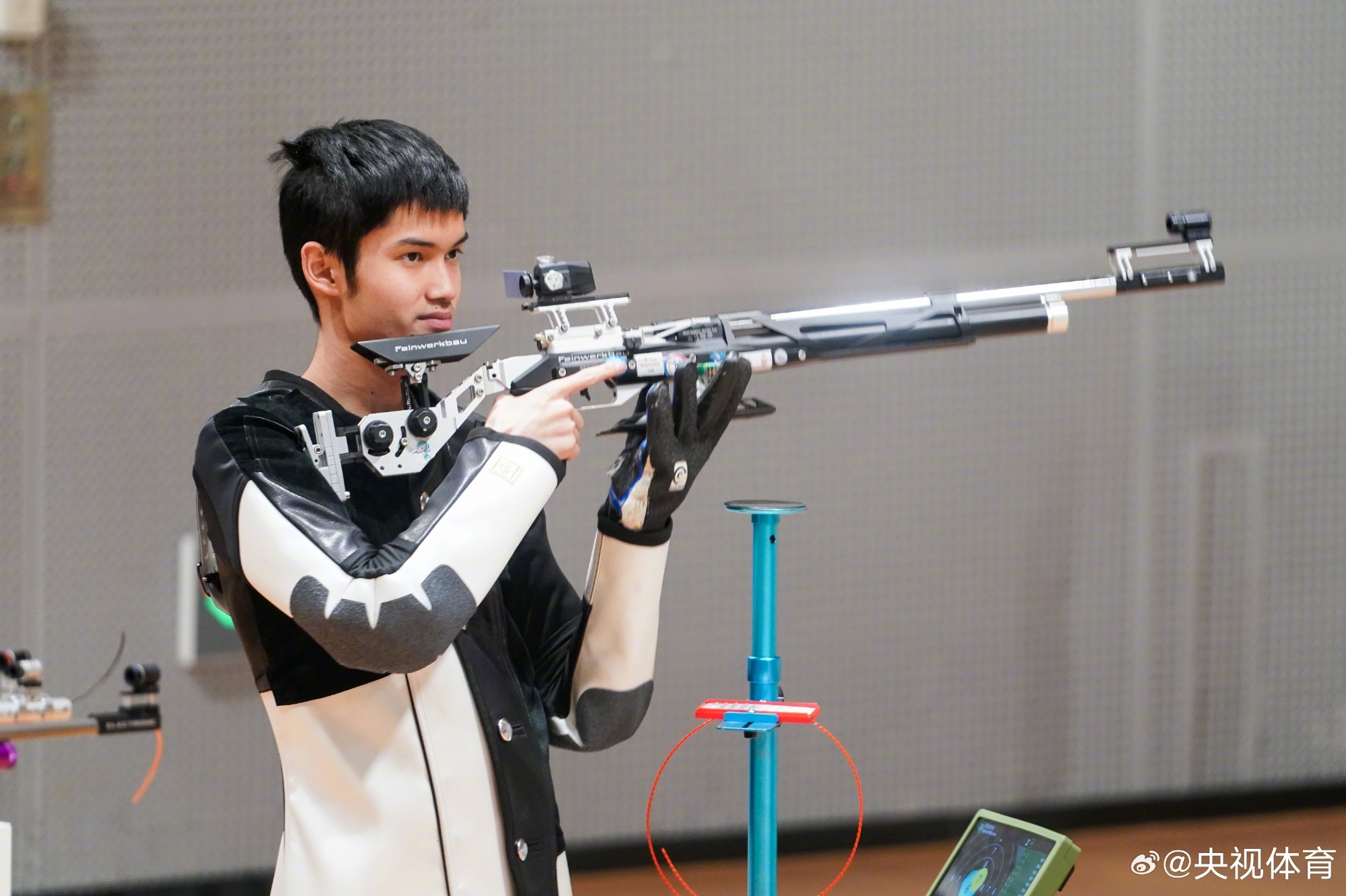 男子10米气步枪团体赛决赛中,盛李豪(社媒账号昵称:光靠干饭就)所在的江苏队夺得金牌。