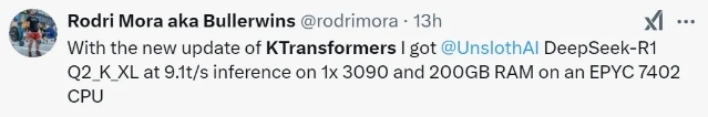 比如清华的团队就用单张RTX 4090+超大规模内存阵列的方式,实现了本地的671B版本DeepSeek部署,而且输出速度并不慢,简单计算下,整体成本远低于购买专业服务器和计算卡,已经具有可行性。