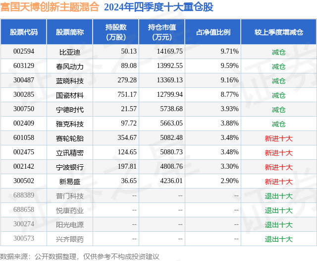 根据2024基金年报公募基金重仓股数据,重仓该股的公募基金共9家,其中持有数量最多的公募基金为富国天博创新主题混合。富国天博创新主题混合目前规模为14.59亿元,最新净值1.7024(2月18日),较上一交易日下跌0.93%,近一年上涨6.63%。该公募基金现任基金经理为毕天宇。毕天宇在任的基金产品包括:富国高端制造行业股票A,管理时间为2014年6月20日至今,期间收益率为203.6%;富国龙头优势混合A,管理时间为2020年1月14日至今,期间收益率为12.32%;富国均衡成长三年持有期混合A,管理时间为2021年9月16日至今,期间收益率为-28.13%。