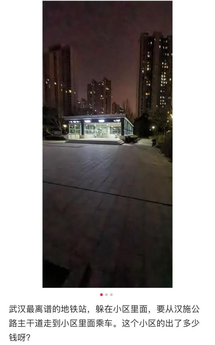 2月16日,一武汉网友发帖称,幸福湾站地铁口设立在小区内,要乘车需进入小区内部。