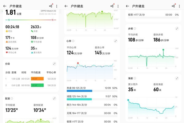 在运动功能上,OPPO通过顶尖硬件+自研算法的双重加持,使得OPPO Watch X2在测试运动心率的精准度上基本可以媲美心率带,并且测试得又快又准,处于运动心率准确性的第一梯队。