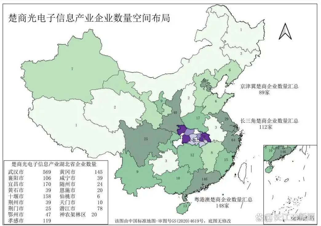 ▼楚商光电子信息产业企业数量空间布局 图/长江云新闻
