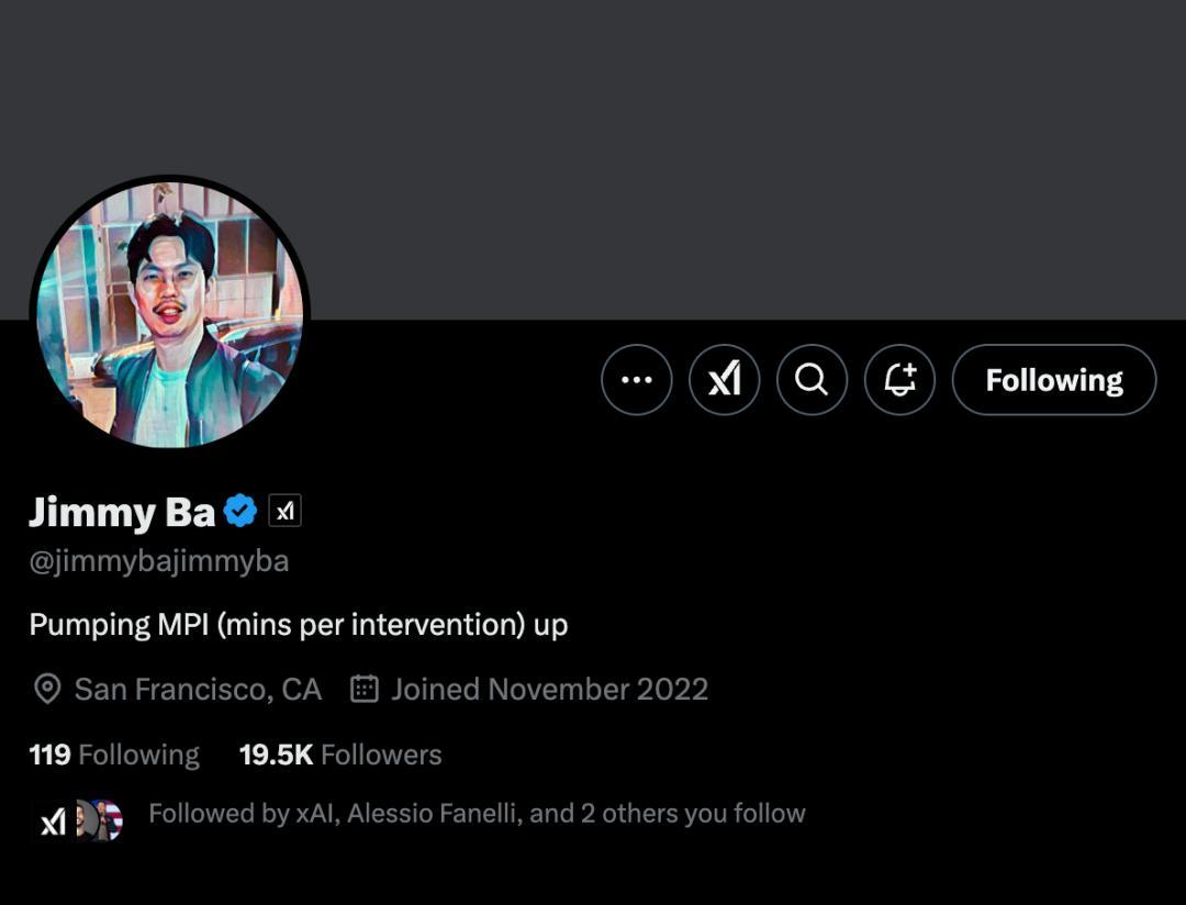 ● Jimmy Ba的X主页,xAI研究负责人,从事软件与研究