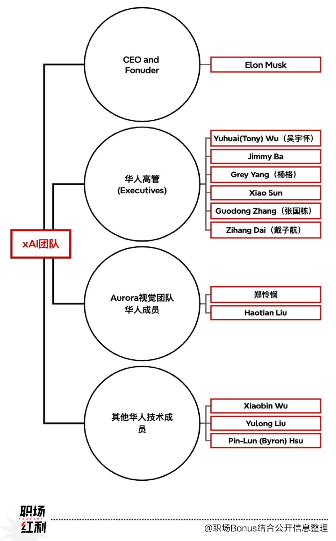 这种"后发制人"的赶超,很大程度上得益于团队的人才结构。一方面,经验丰富的决策者必不可少。正如xAI从谷歌、微软等头部公司吸纳了很多经验丰富的顶尖科学家,来带头领路。