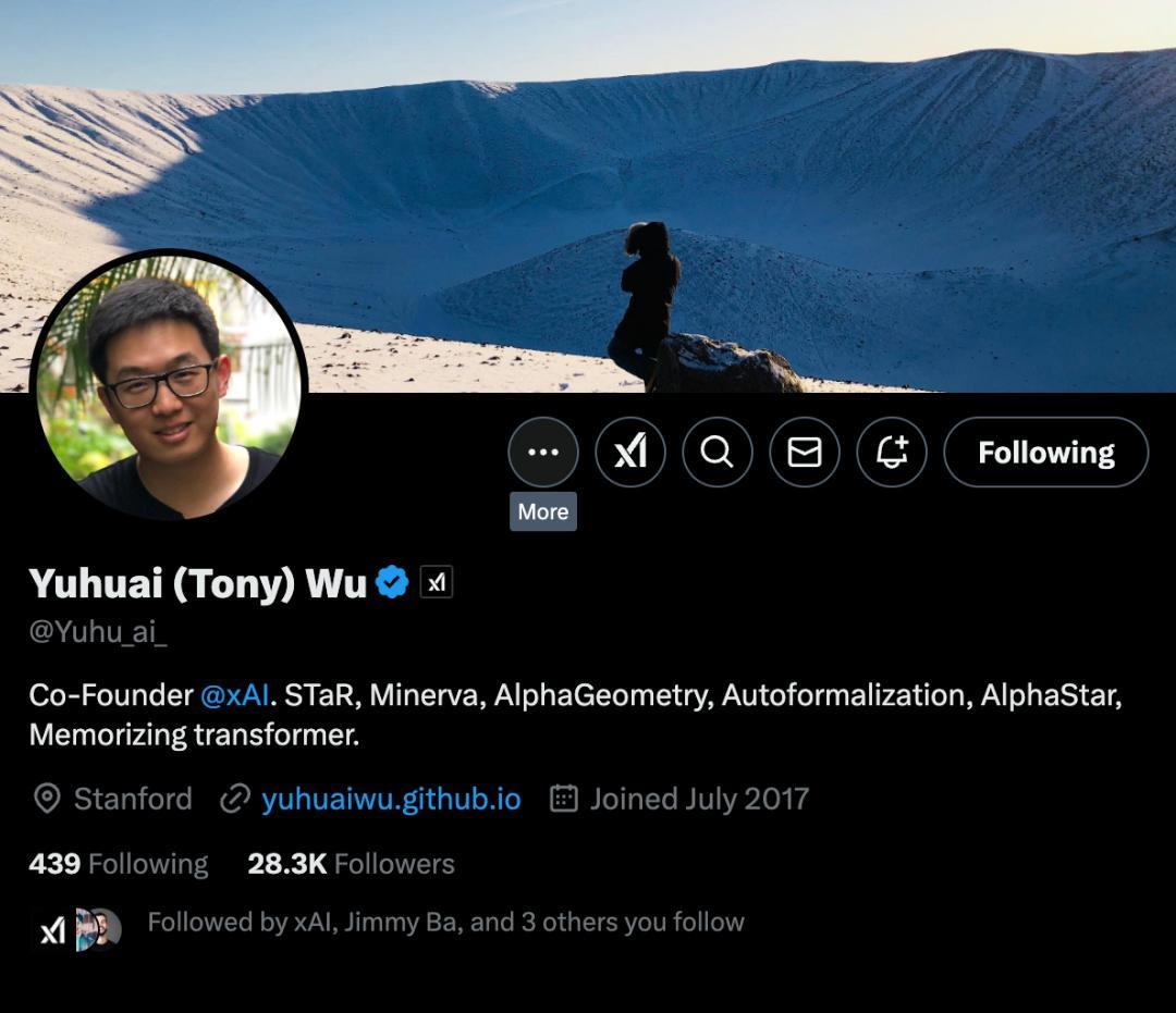 ● 吴宇怀的X主页,xAI联合创始人,关注推理
