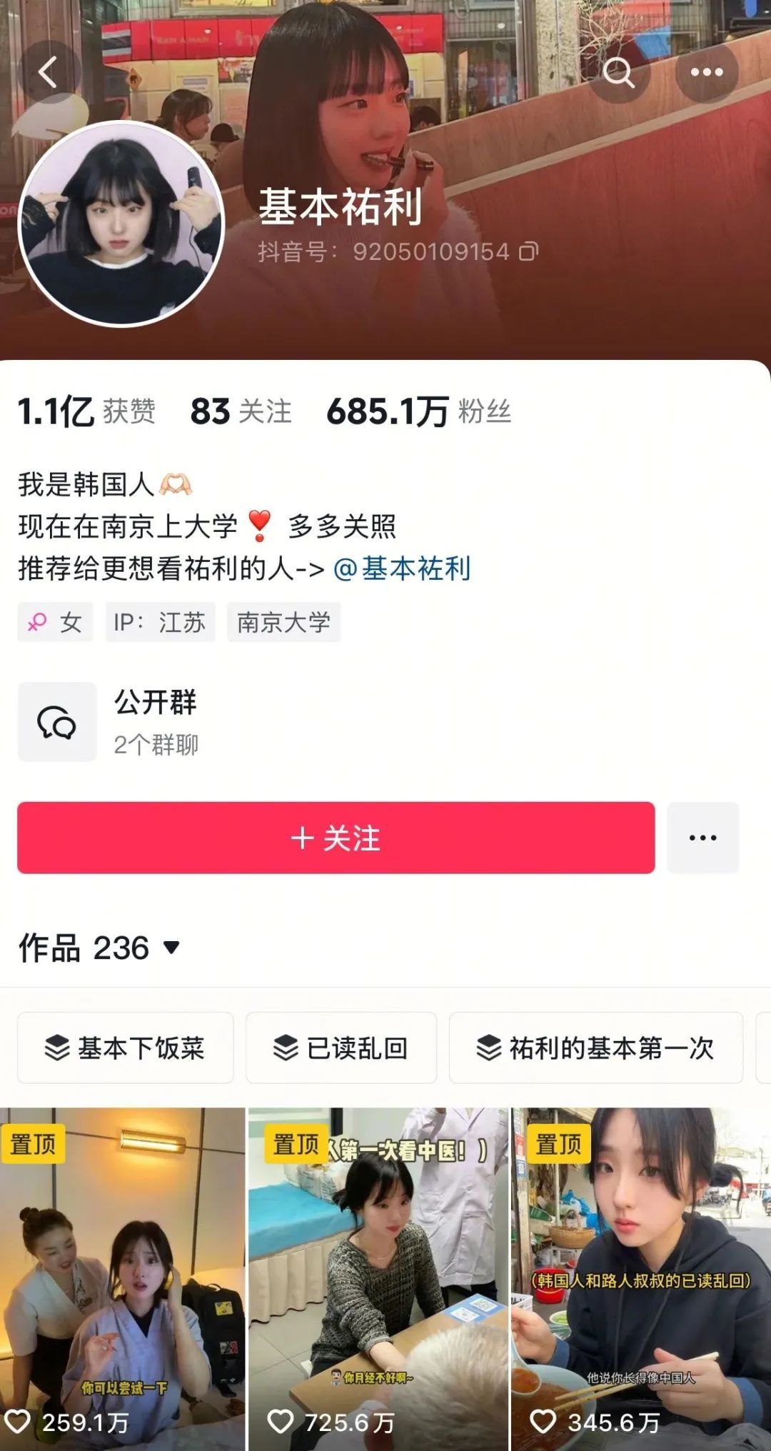 在全球化日益加深的今天,人们对不同国家的文化充满好奇。@基本祐利 精准抓住 “文化差异” 这一流量密码,作为在华留学的韩国人,她将韩国文化与中国文化进行生动碰撞与融合。