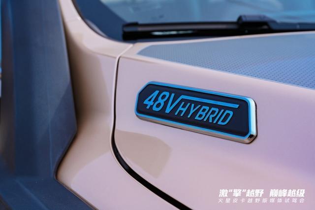 在试驾火星9越野刀锋版和火星7探界版之前,我曾多次在铺装公路上感受过这套系统,给我的感觉是起步平顺,启动和常规通勤的噪音都不大。电机在起步和低速阶段提供辅助动力,使火星皮卡整车虽然大,但是起速并不迟缓,起步加速度和百公里加速性能有所保障。此前,我也对油耗进行了测试。同样,即便车体重,车身大,但由于拥有智能启停功能、能量回收技术,以及匹配了主动进气格栅和超低风阻设计,火星皮卡全系的工况油耗很经济,可以达到综合油耗百公里为6.8L的水平。