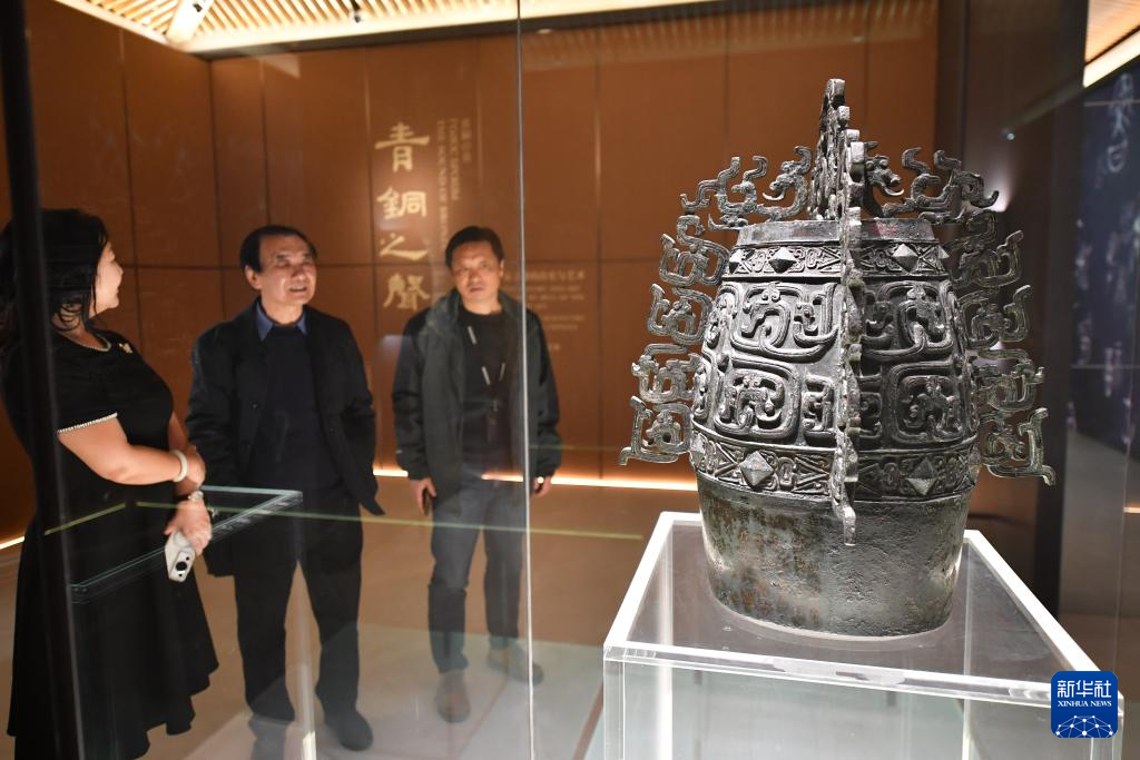 西安咸阳国际机场T5航站楼内的机场博物馆展出的国家一级文物秦公镈(2月20日摄)。