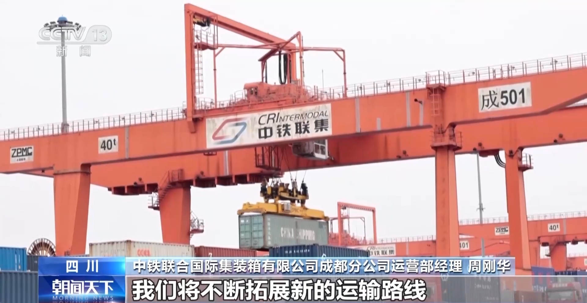 中铁联合国际集装箱有限公司成都分公司运营部经理 周刚华:新的一年运量持续上涨,目前已超过去年同期水平,我们将不断拓展新的运输路线,希望有更多的中国造产品输送到世界各地。