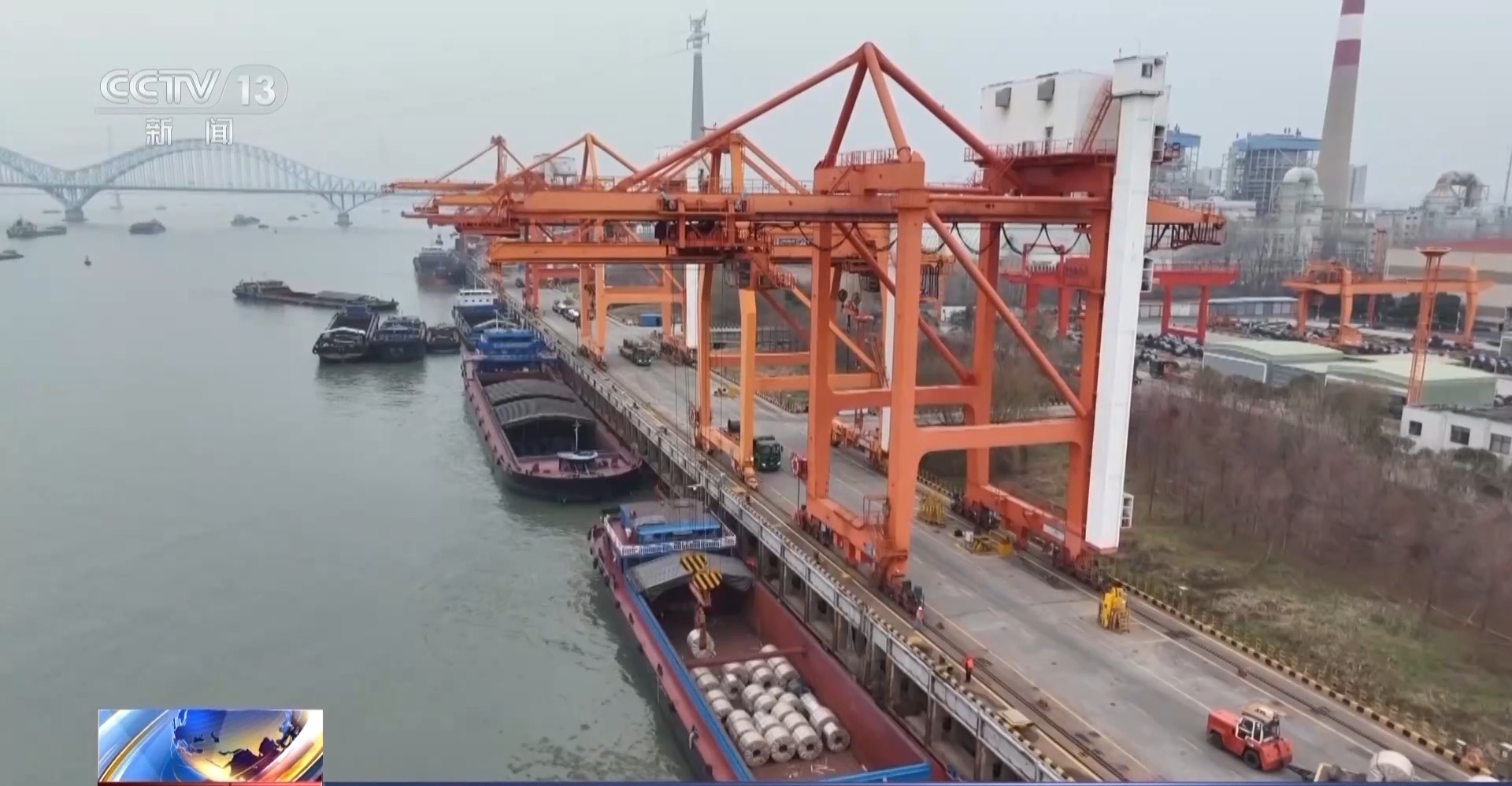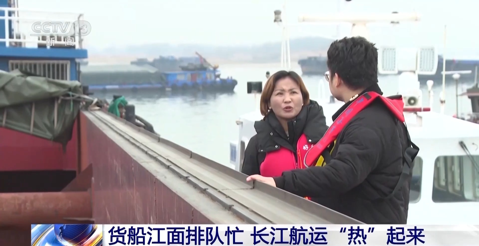 总台央视记者 王善涛:这里是长江南京段,元宵节刚过,虽然气温还比较低,但这里的航运已经开始热闹了起来,在临时停泊区里,可以看到大大小小的船舶,已经有四五十艘在这里驻泊。