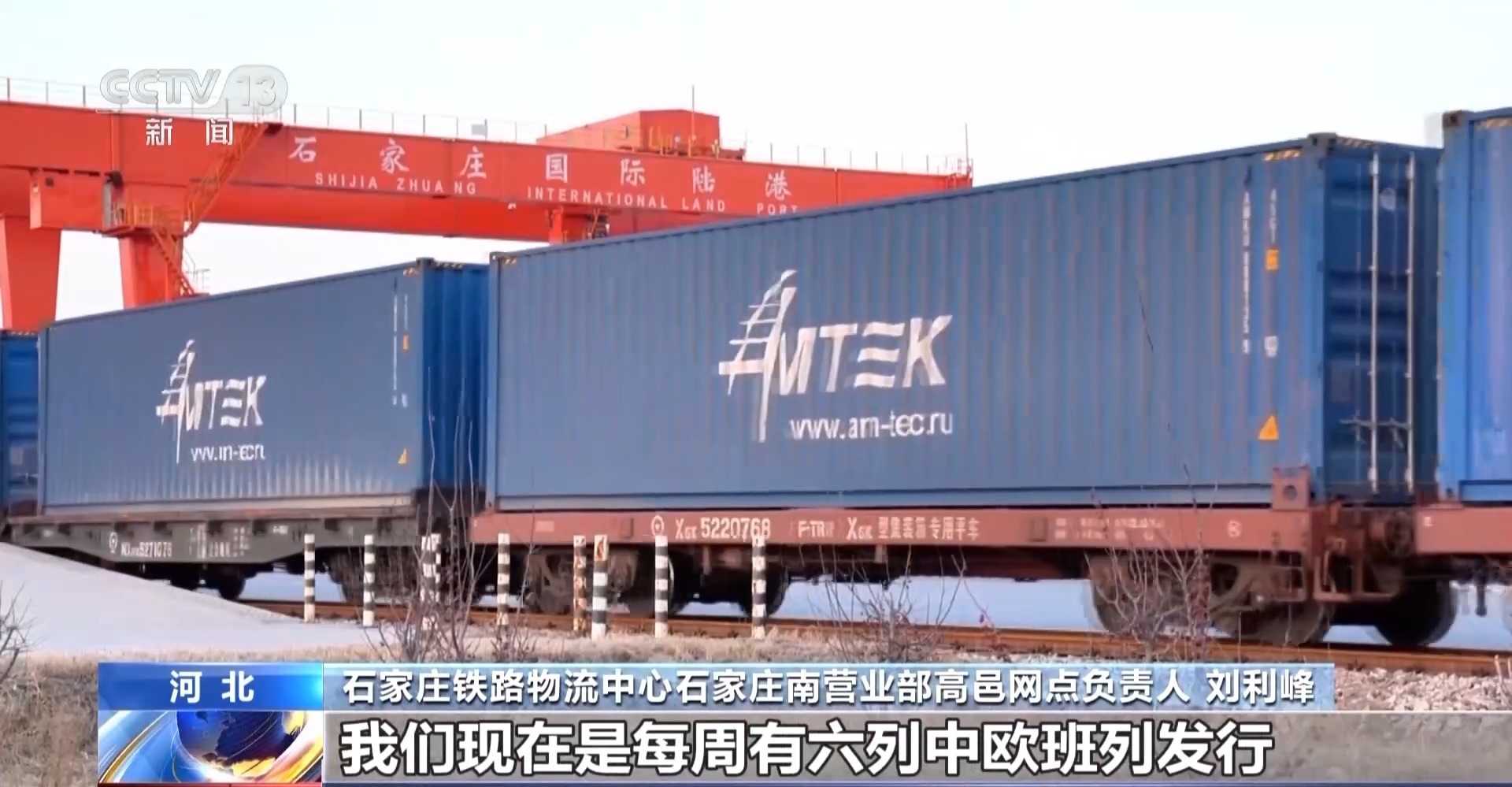 石家庄铁路物流中心石家庄南营业部高邑网点负责人 刘利峰:我们现在每周有六列中欧班列开行,到达匈牙利、俄罗斯、东盟等国家地区。