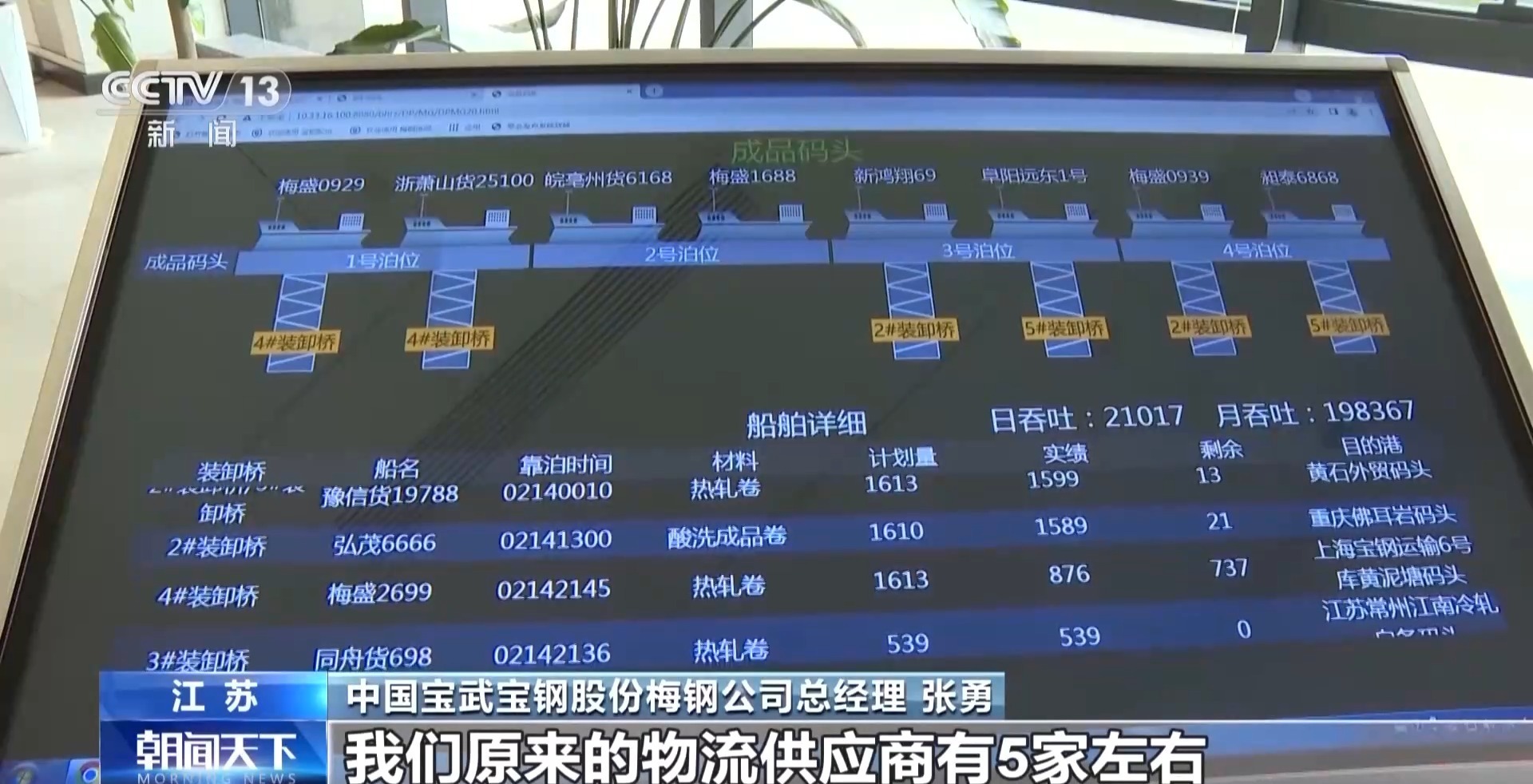 中国宝武宝钢股份梅钢公司总经理 张勇:我们原来的物流的供应商有5家左右,及时性不一定能满足。现在没有限制了,我们通过网络货运平台,只要有运力的企业都能参加,供应商的选择面就非常大。
