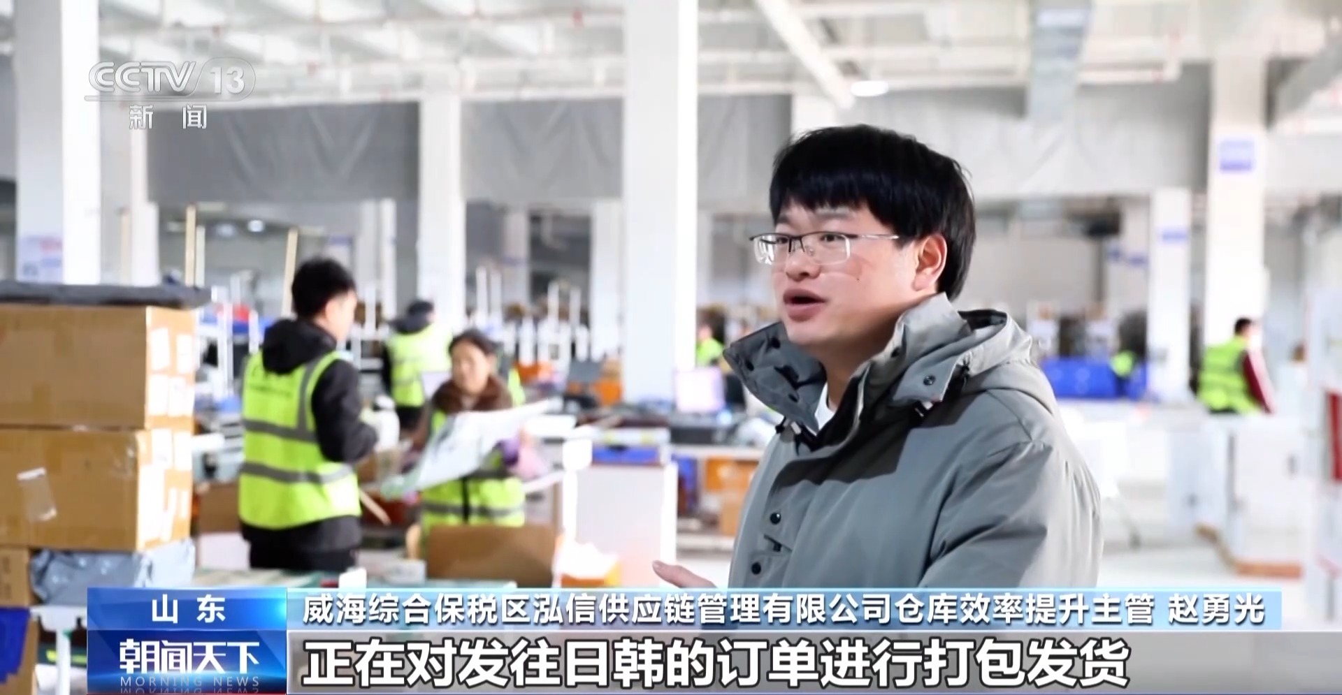威海综合保税区泓信供应链管理有限公司仓库效率提升主管 赵勇光:2024年我们发货及时率一直维持在99%以上,新的一年里,希望跨境电商事业做得红红火火。